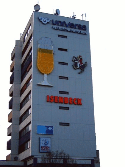Die Werbung am Universa-Haus. Für jeden Durchreisenden gut